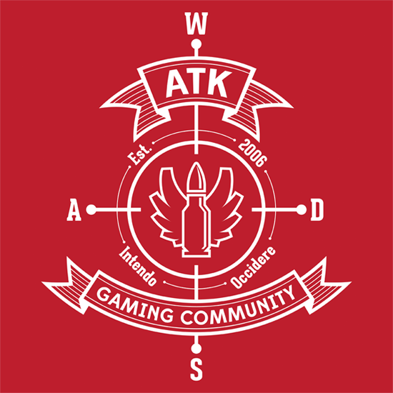 Whatever the design I think the ATK letters should be the most prominent. I'm actually not too fussed with the "gaming community" text being there at all. In fact, I think I'd rather have the URL there, so people know where to go. Or is that a bit OTT?